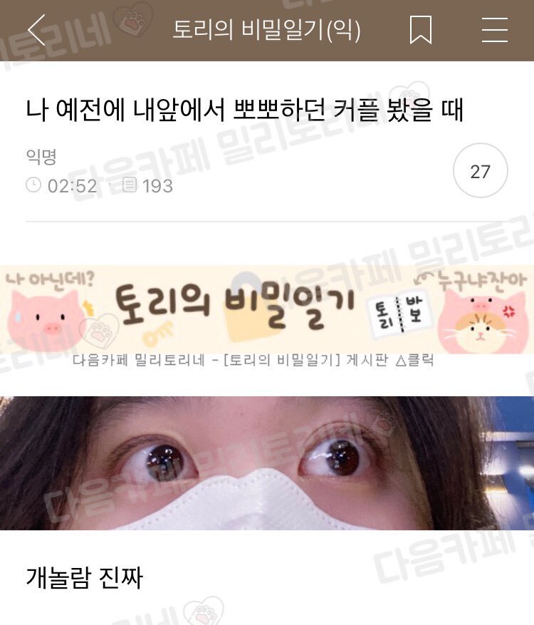 [스크랩] [흥미돋]나 예전에 내 앞에서 뽀뽀하던 커플 봤을 때 작성자최남오|작성시간23.01.13|조회수14,024 목록 댓글 17 글자크기 작게가 글자크기 크게가 출처 : https://m.cafe.daum.net/baemilytory/91cd/278897?svc=cafeapp 다음검색 스크랩 원문 : *여성시대* 차분한 20대들의 알흠다운 공간 현재 게시글 추가 기능 열기 북마크 공유하기 신고 센터로 신고 댓글 댓글 17 댓글쓰기 답글쓰기 댓글 리스트 작성자닉네움수죵 | 작성시간 23.01.13 여시들 얼평은 앵간하면 안해도 될듯!! 그리고 띠용 그 잡채라 개웃김 작성자느개비메타버스노인석없다고소리지름 | 작성시간 23.01.13 진짜 띠용때용 ㅋㅋㅋㅋㅋㅋㅋㅋㅋㅋㅋ 작성자Edith | 작성시간 23.01.13 ㅋㅋㅋㅋㅋ개놀라보여 작성자하트본비 | 작성시간 23.01.14 그래보옄ㅌㅌㅌㅌㅌㅌㅌㅌㅌㅌㅌㅋ 작성자럼에 절인 건과일 | 작성시간 23.01.14 ㅋㅋㅋㅋㅋㅋㅋㅋㅋㅋㅋㅋㅋㅋㅋㅋㅋㅋㅋㅋㅋㅋㅋㅋㅋㅋㅋㅋ 댓글 전체보기