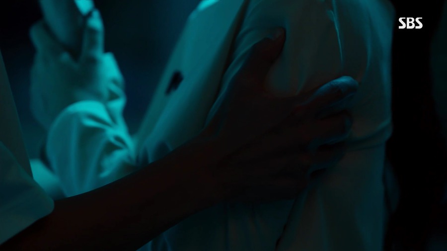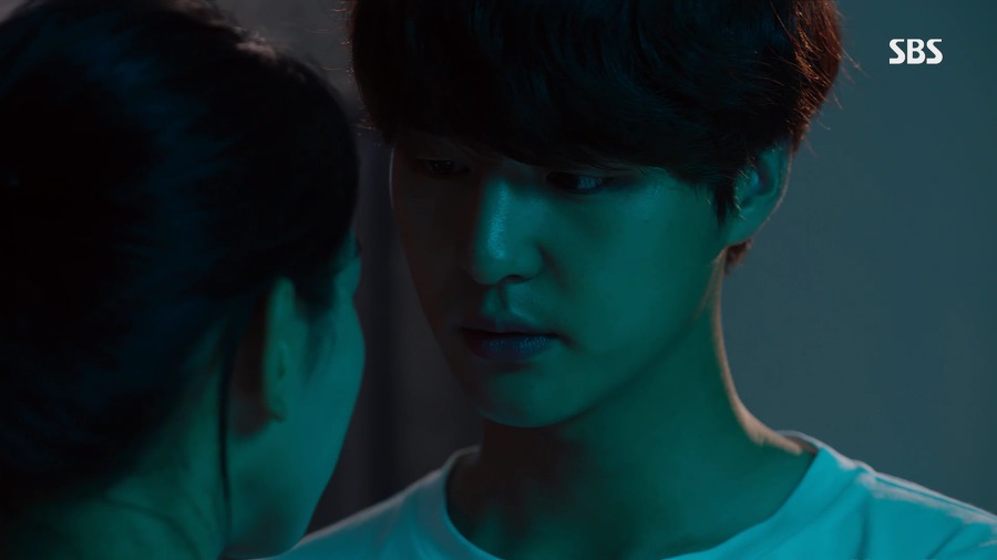 옷 벗으려던 우진은 낮에 서리가 달아준 단추를 발견함