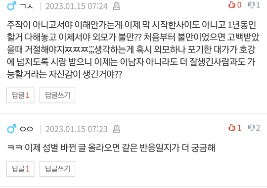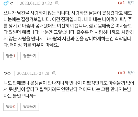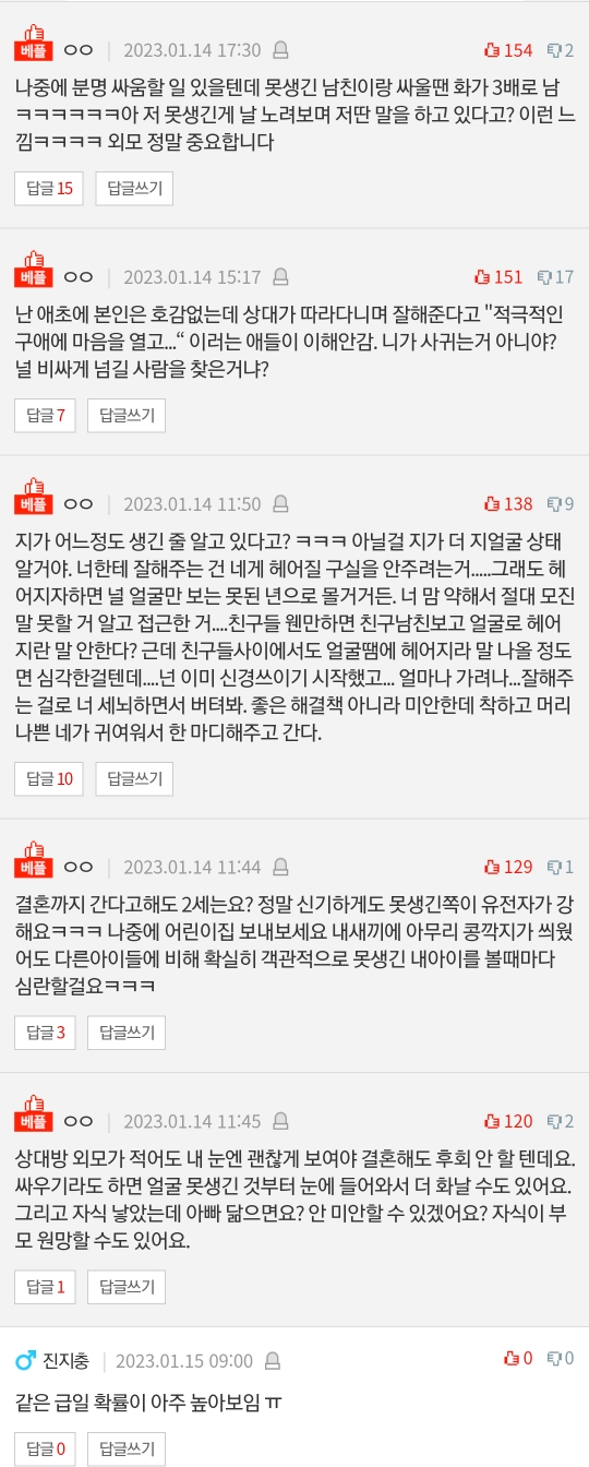 작성자행운이가득했으면 작성시간 23.01.16 남자는 못생긴 게 나쁜 거지....