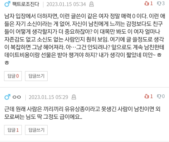 남자친구의 외모 때문에