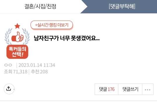 남자친구 못생겼다는 이야기는 가끔 하네요 ㅠㅠ