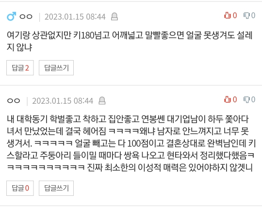 작성자걍파란색좋아해서민주당 작성시간 23.01.16 키작남과 못생남은 피해를줍미다