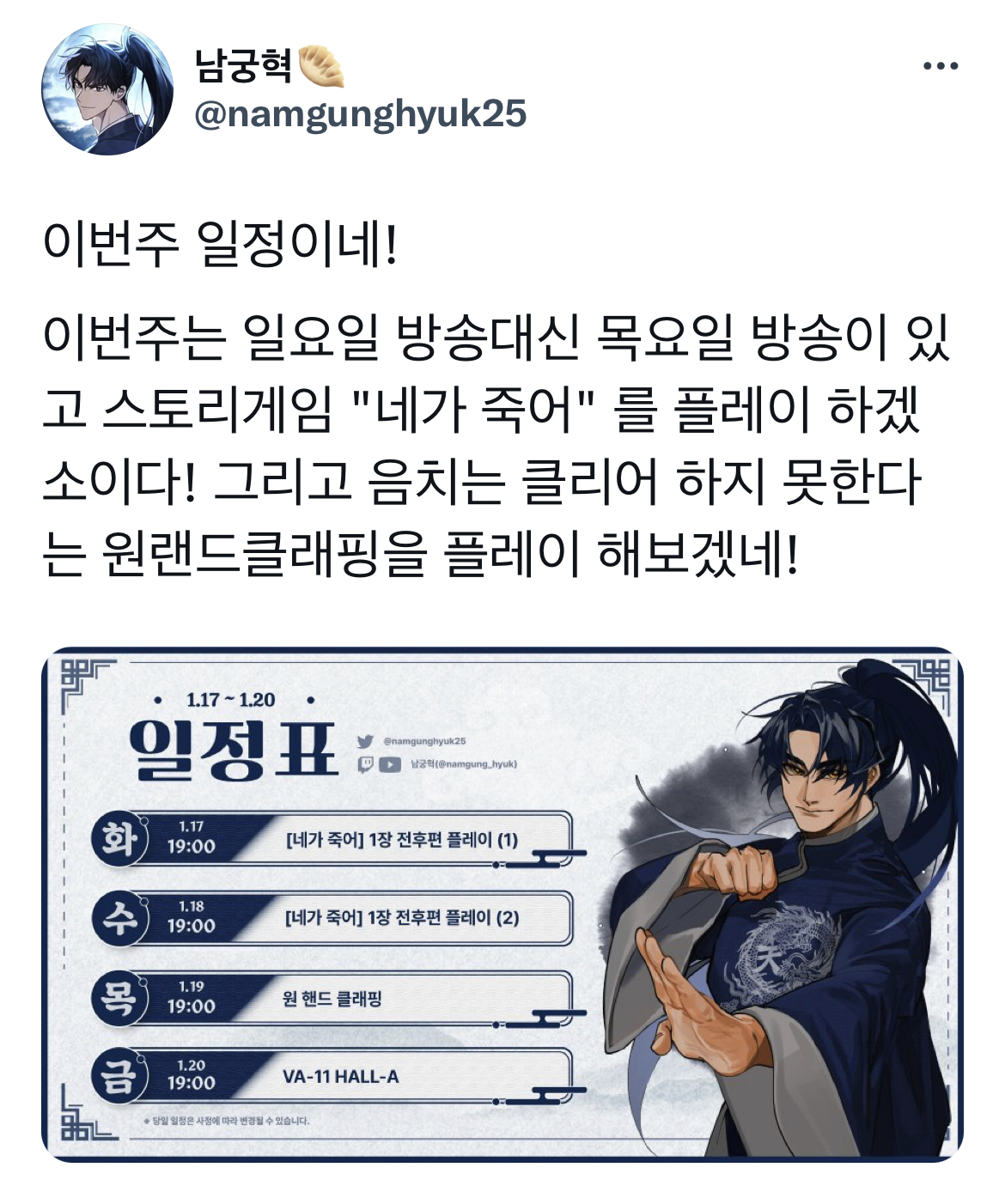 이 아니고 본문 주인공인 버츄얼 스트리머 남궁혁