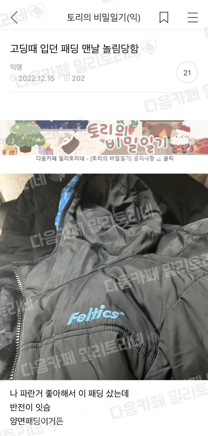 [배꼽의행방]고딩때 입던 패딩 맨날 놀림당함 작성자최욤|작성시간23.01.17|조회수245,312 목록 댓글 30 글자크기 작게가 글자크기 크게가 출처 : https://m.cafe.daum.net/baemilytory/91cd/702842?svc=cafeapp 다음검색 현재 게시글 추가 기능 열기 북마크 공유하기 신고 센터로 신고 댓글 댓글 30 댓글쓰기 답글쓰기 댓글 리스트 작성자로또당첨기원S2 | 작성시간 23.01.17 ㅁㅊ펠틱스 추억소환;; 작성자치원 | 작성시간 23.01.17 아 ㅋㅋㄱㅋㄱㅋㄱㅋㄱㅋㄱㅋㄱㅋㄱㅋㄱㅋㄱㅋㅋㄱㅋㅋ 작성자판교타운하우스 | 작성시간 23.01.17 개웃겨나도요청하고싶엌ㅋㅋㅋㅋㅋ 작성자개질알하는아부 | 작성시간 23.01.17 아놔 인기글로 봐서 제목만 보고 분노+눈물 장전하고 들아왔는데 ㅅㅂㅋㅋㅋㅋㅋㅋㅋㅋㅋㅋㅋㅋㅋㅋㅋㅋ 행복했음됐다 작성자법규 굥 | 작성시간 23.02.02 스키복으론 좋은데왜 ㅠㅋㅋㅋㅋㅋ 댓글 전체보기