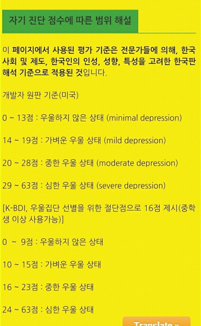 [스크랩] [흥미돋]우울증 자가진단법.jpg 작성자flflf|작성시간23.01.18|조회수9,682 목록 댓글 122 글자크기 작게가 글자크기 크게가 http://www.tomylove.net/medicine-psychology/beck-online-self-depression-test.html링크들어가서 설문에 쳌하면됨 다음검색 스크랩 원문 : 도탁스 (DOTAX) 현재 게시글 추가 기능 열기 북마크 공유하기 신고 센터로 신고 댓글 댓글 122 댓글쓰기 답글쓰기 댓글 리스트 작성자막스베르스타펜 | 작성시간 23.01.18 36 작성자히히힛히ㅣㅇ | 작성시간 23.01.18 43 작성자11♡5 | 작성시간 23.01.19 32점이나나왔네.. 작성자집갖고싶다.. | 작성시간 23.01.19 18 작성자PgupPgdn | 작성시간 23.02.20 11점? 댓글 전체보기