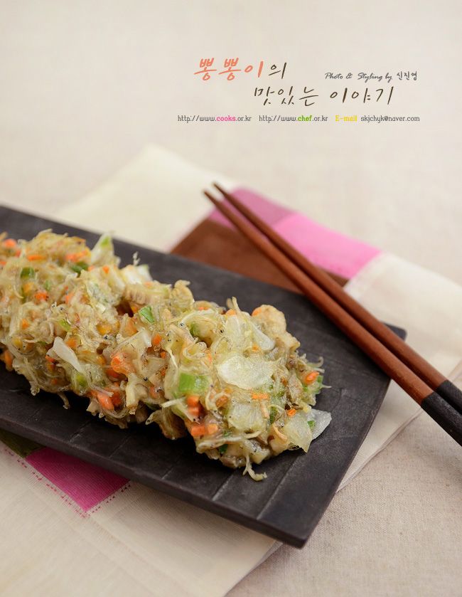 작성자그대여서 고마워요 작성시간 23.02.04 홍합전! 홍합 한 번 찌고 => 계란 흰색 노란색 별로 나눔 => 수저로 계란물 한 숟갈 떠서 지단 처럼 부치면서 안에 홍합 하나씩 넣고 돌돌 말기. 오징어 전, 새우전.