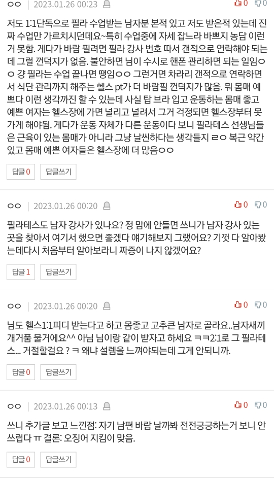 저는 아무리 운동이라지만 1:1 필라테스 학원이어서