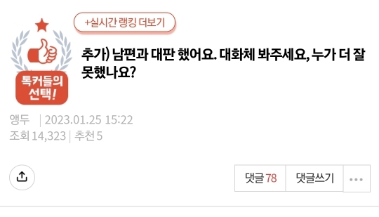 남편과 크게 싸운 건이어서 조언이 많이 필요해서요..