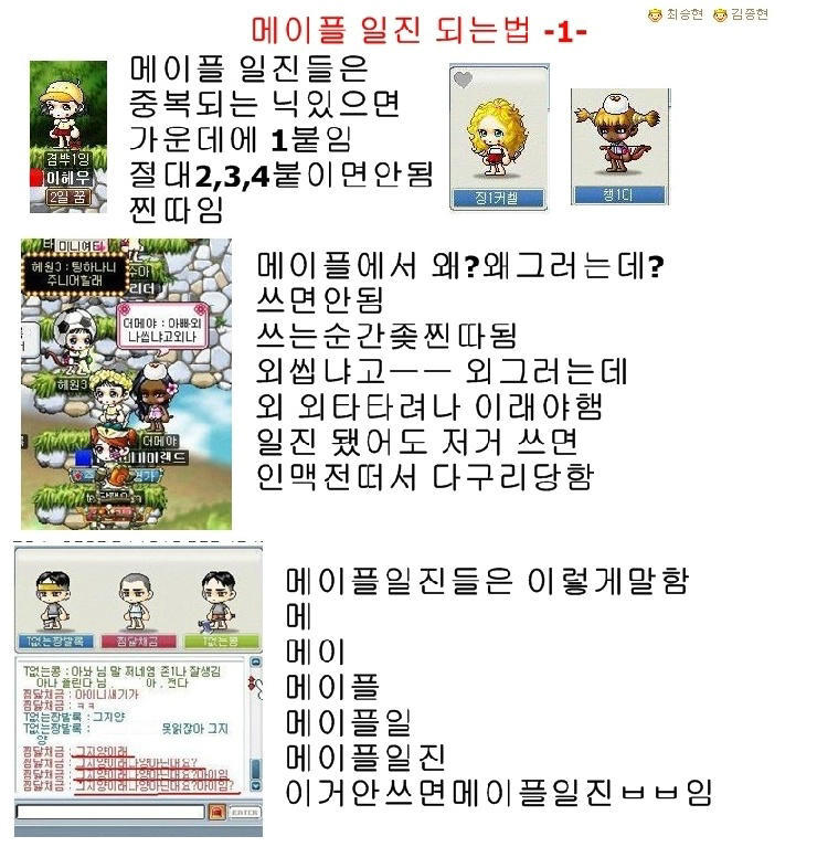 메이플 일찐에대해 더 알고싶으면 유쾌방 검색창에 일찐유형탐구 검색하세여