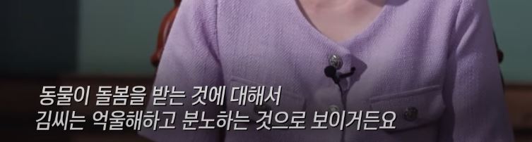 동물이 돌봄을 받는 것에 대해서 김씨는 억울해하고 분노하는 것으로 보이거든요