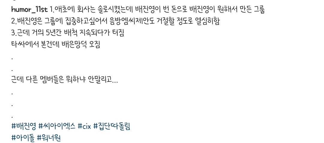 작성자어그거실화 작성시간 23.02.01 근데 솔직히…배진영이 있어서 존재할 수 있는 그룹아닌가