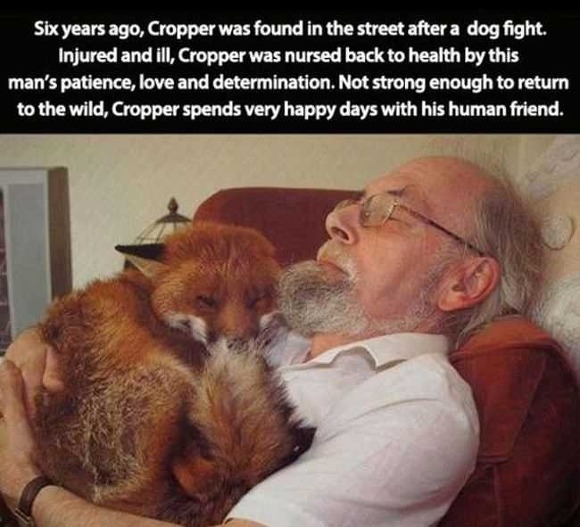 여우는 회복됐지만 야생으로 다시 돌아가지 않았다 이 남성과 너무나 친해졌기 때문이다.