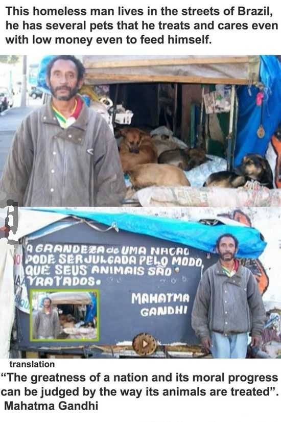 브라질의 한 노숙자가 버려진 강아지들을 데려다 키우고 있다.