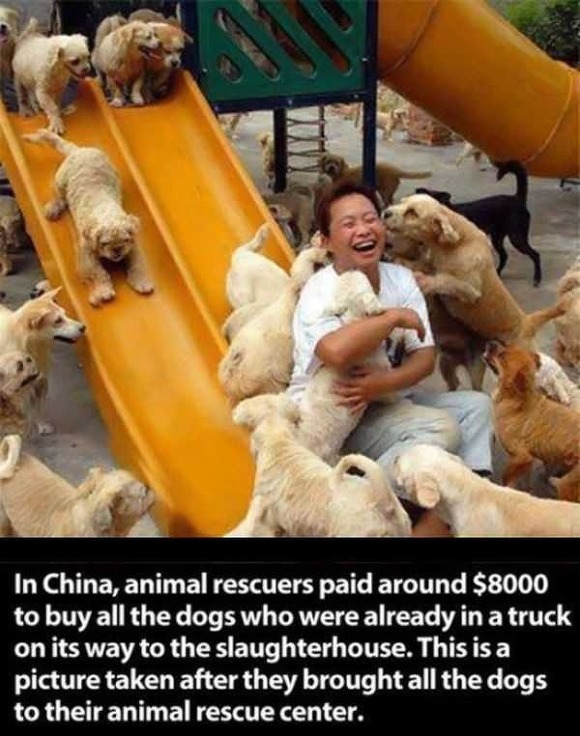 중국에 사는 한 여성은 도살장으로 끌려가기 직전에 강아지들을 돈을 주고 샀다.