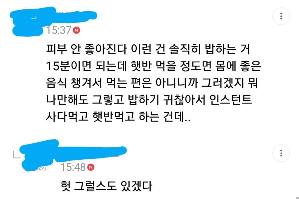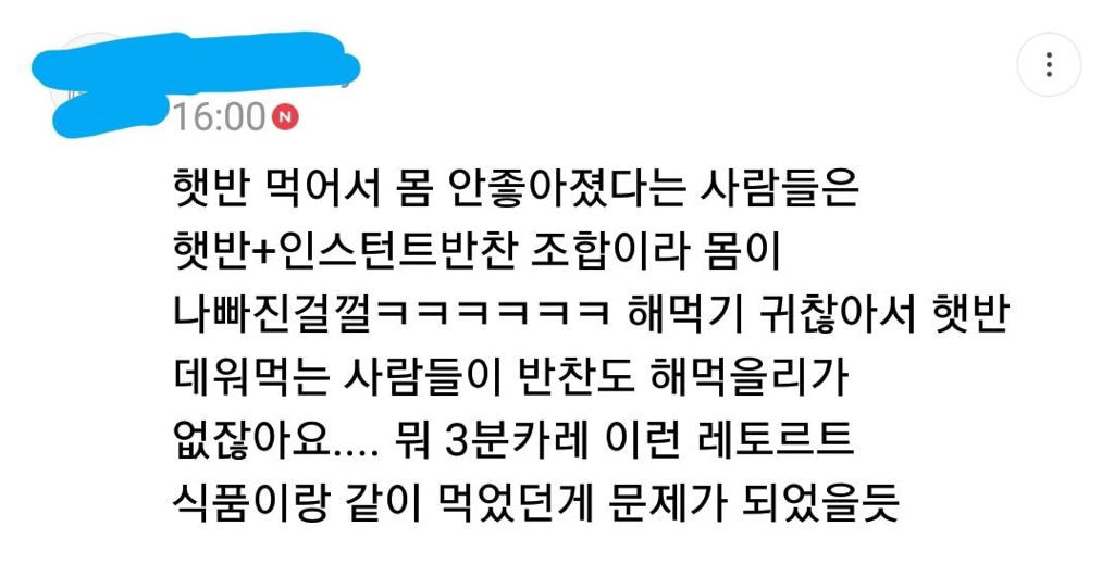 작성자모무모무 작성시간 23.02.05 다 알고는있는데 햇반이나 즉석밥 냄새가 너무 역해서 못먹겠더라고ㅠ