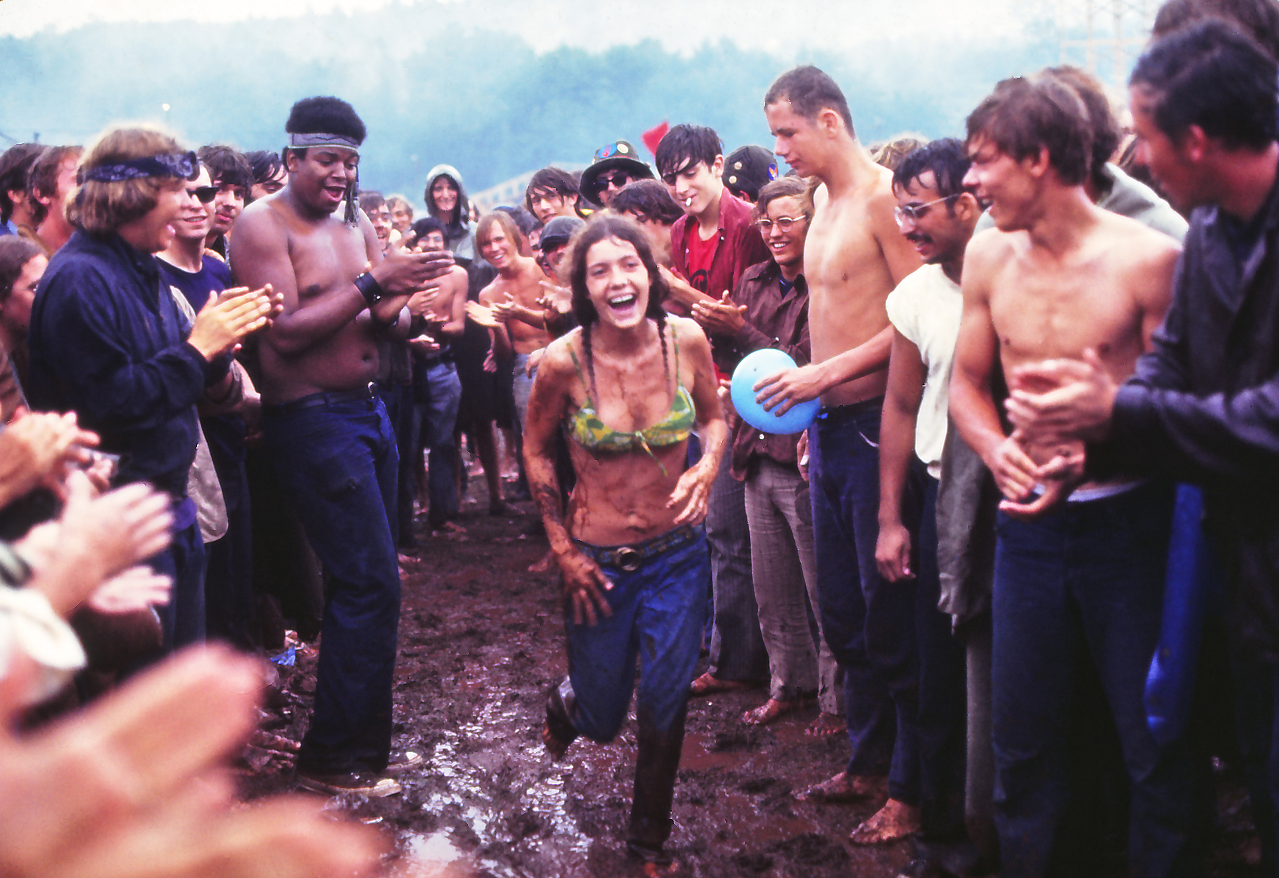 60년대 젊은이들은 굴하지 않고 진흙탕이 된 부지에서 뛰고 노래를 부르며 자유를 만끽했다