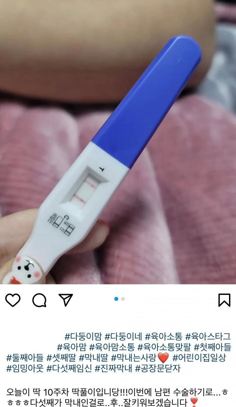 최근 다섯째 임신으로 오둥이 가족이 됨