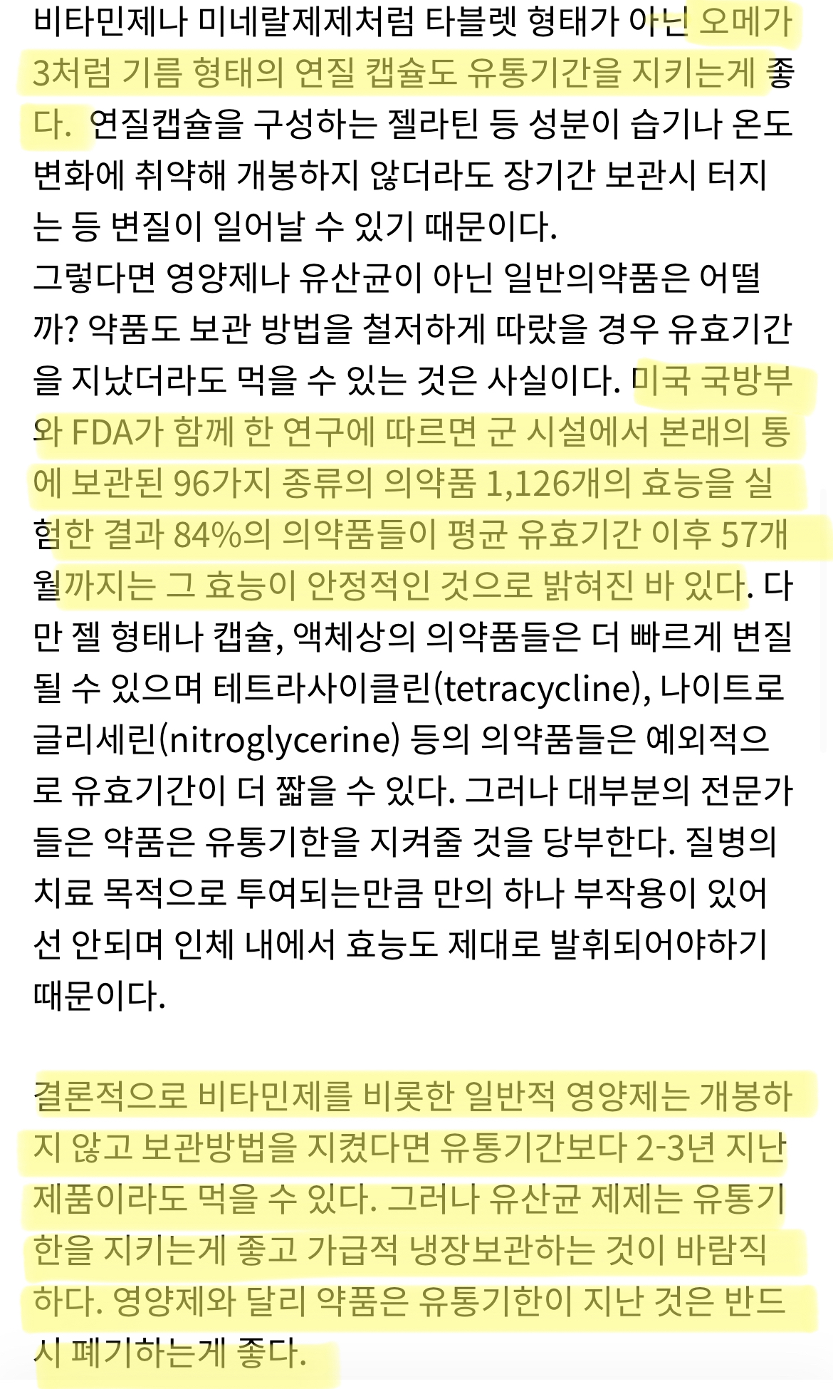 그러나 유산균, 오메가3는 유통기한 지키는게 좋음