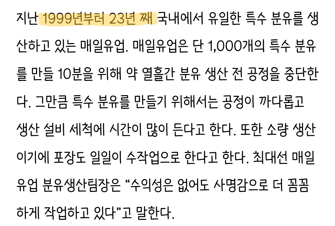 1999년부터 23년동안 제작하는 특수 분유