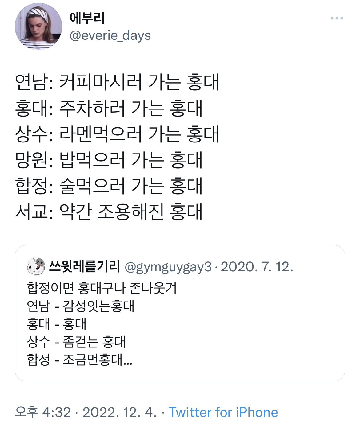 작성자냥애치 작성시간 23.02.10 이정도면 서울 마포구 홍대동하자...ㅎ