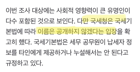 국세기본법에 따라 실명 공개하면 안되는데
