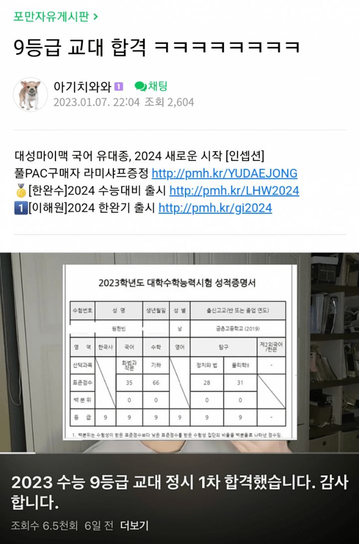 올 9등급이 1차 붙었다는 그 학교 맞음