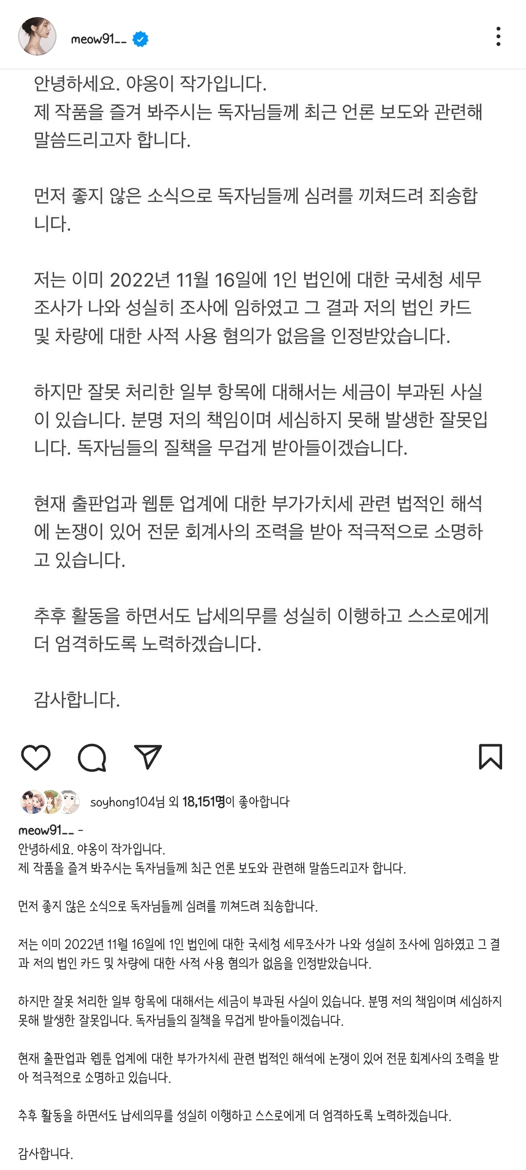 작성자나이먹기 싫어 작성시간 23.02.12 결국 탈세 인정이고요~