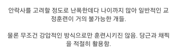 작성자고치돈가스 작성시간 23.02.19 끝을 본 개들을 안락사만은 피하려고 훈련하는건데 이해됨