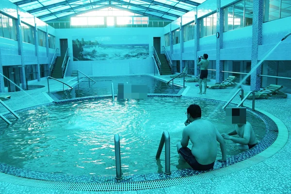 거기서 본 광경은 목욕탕이라기보다는 수영장이었다. 수영복을 착용하고 들어가는 방식이고, 앞의 큰 욕조는 냉탕이었기 때문에 그런 의미에서 완전히 수영장이나 다름없었다. 안쪽의 작고 둥근 욕조는 따뜻한 욕조였기 때문에 그쪽으로 들어가기로 했다.
