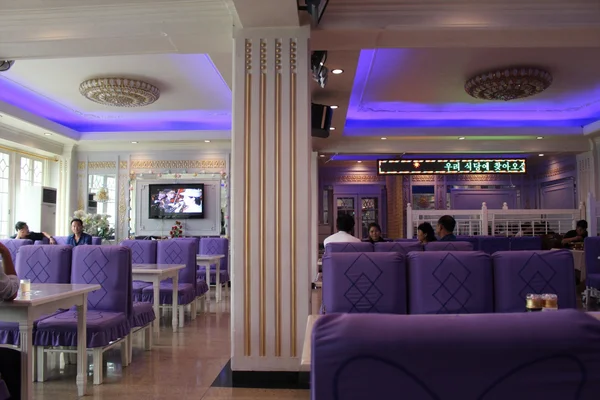 모두가 즉각 답하고 옥류관의 별관으로 왔다. 아마 본관보다 캐주얼한 분위기의 가게라고 생각한다. 다만 좌석도 천장도 보라색으로 빛나고 있는 이유는 잘 모르겠다.