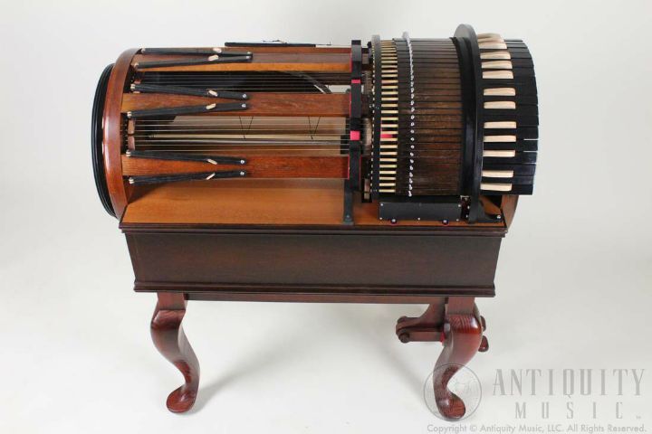 휠 하프는 레오나르도 다 빈치의 Viola Organista와 비슷한 악기입니다. 건반과 페달 모터가 달린 현악기입니다.