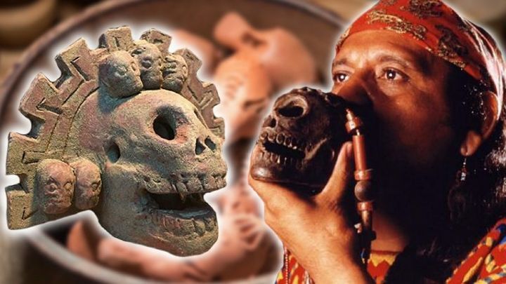 데스 휘슬은 아즈텍의 악기로, 실제 사람의 두개골이나 동물의 두개골로 만들어진 악기입니다. 내부 구조가 사람의 성대와 흡사하다는 이야기를 토대로, 연주할 시 사람의 비명과 비슷한 소리가 난다고 합니다.