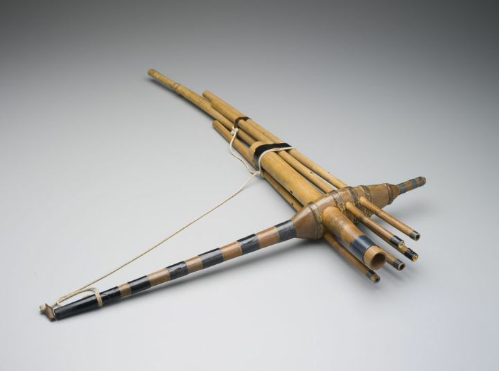 Lusheng은 중국 몽족의 악기로, 여러 개의 대나무 파이프가 있는 입 오르간입니다. 각각 나무로 만든 긴 입구에 리드가 장착되어 있습니다.