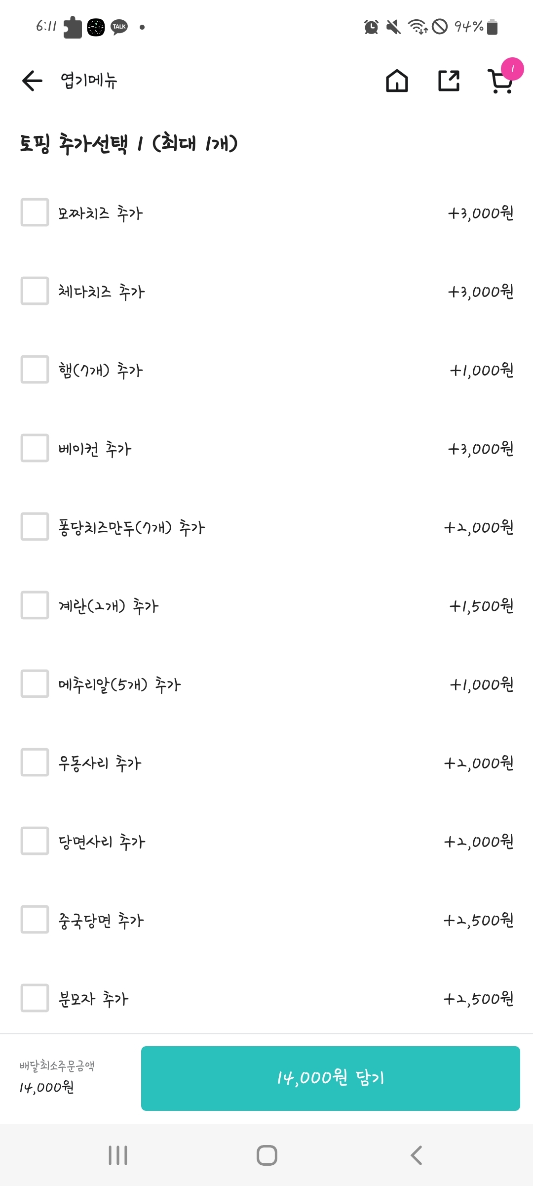 [스크랩] [흥미돋]엽떡 토핑 딱 하나 추가 가능하다면 뭐 넣을건지 달글 작성자PoVpOv|작성시간23.02.16|조회수12,858 목록 댓글 74 글자크기 작게가 글자크기 크게가 까글 작성 활중분란 조장, 마플되는 글 작성 금지🍕좋은글🍿웃긴글🍗대환영🍣 치즈추가 3처넌베이컨 3천원햄 처넌치즈만두 2처넌계란 천오백메춰리알 2천우동사리 2천당면 2처넌중당 2500분모자 2500하나만 골라야댐 다음검색 스크랩 원문 : *여성시대* 차분한 20대들의 알흠다운 공간 현재 게시글 추가 기능 열기 북마크 공유하기 신고 센터로 신고 댓글 댓글 74 댓글쓰기 답글쓰기 댓글 리스트 작성자괄괄이 | 작성시간 23.02.17 베이컨 작성자76ChoDang | 작성시간 23.02.17 중당 사랑혀 작성자나랑함께놀친구빙봉빙봉 | 작성시간 23.02.17 소세지 내살앙 작성자울고 넘는 염천교 | 작성시간 23.02.17 당면 작성자이도저도 아닌애 | 작성시간 23.02.17 모짜치즈.. 댓글 전체보기