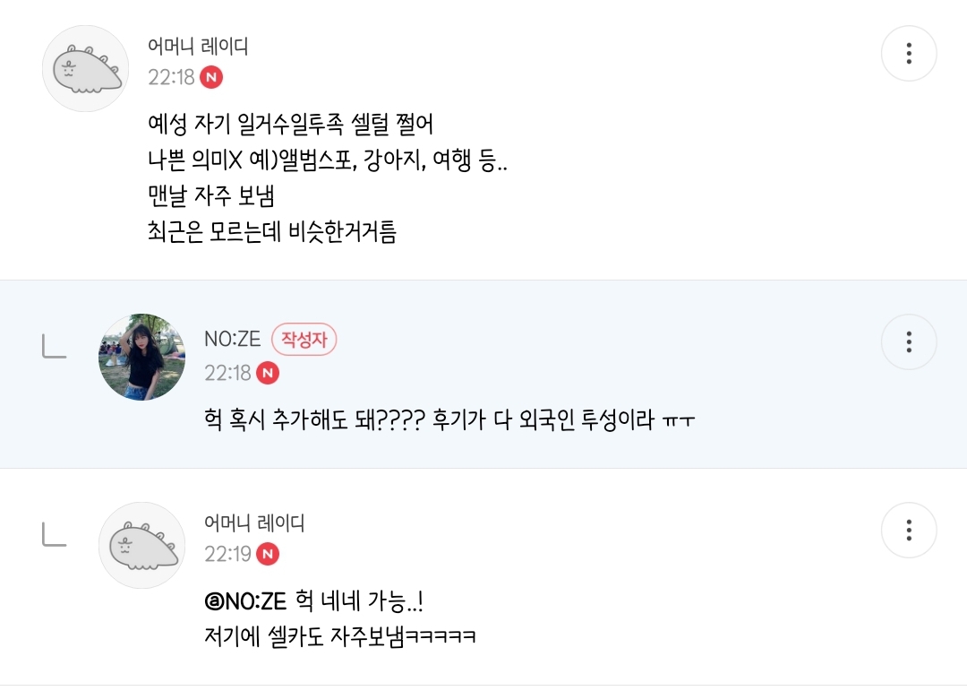 근데 예성 특성상 이상한 거 안 보냄 자기 셀털 많이 함
