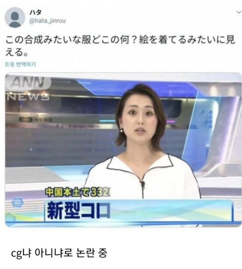 [흥미돋]논란의 일본 여자 아나운서 의상 작성자일단똥을싸라|작성시간23.02.18|조회수15,426 목록 댓글 10 글자크기 작게가 글자크기 크게가 출처 : 여성시대 일단똥을싸라써있는 왜놈어는이거 합성아녀? 그림그린것처럼 보여 라고 써있음출처 이종인데 걍 훔쳐옴 다음검색 현재 게시글 추가 기능 열기 북마크 공유하기 신고 센터로 신고 댓글 댓글 10 댓글쓰기 답글쓰기 댓글 리스트 작성자유채꽃피시나 | 작성시간 23.02.18 씨발 별걸로 다 논란이다 하고 들어왔다 이건 좀 인정 ㅋㅋㅋㅋ 작성자넌행운아야정말로 | 작성시간 23.02.18 ㅋㅋㅋㅋㅋㅋㅋㅋㅋㅋㅋ 작성자끝나가는방학 | 작성시간 23.02.18 뭐야 옷돌려줘요 작성자100원 | 작성시간 23.02.18 그림입은거같대 ㅋㅋㅋㅋㅋ ㄱㅇㄱ 작성자왜그러고살어 | 작성시간 23.02.18 포토샵도 아니고 그림판!! 댓글 전체보기