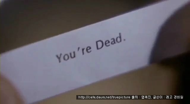 그리고 문구를 읽자, 갑자기 뒤에 배경에서 보이는 남자가 달려오다가