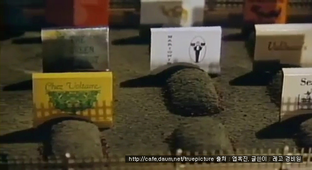 자기가 쓴 비평으로 망해버린 가게의 성냥을 묘비처럼 세워서 장식합니다.