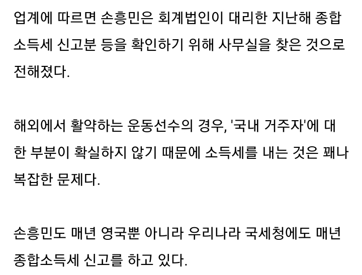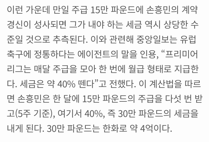 = 이렇게 따지면 손흥민의 경우 영국에 약 40%의 세금을 내야함