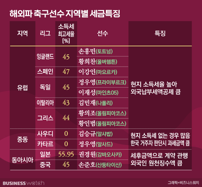 대신 유럽에서 뛰는 선수의 경우 현지 소득세율이 높기 때문에