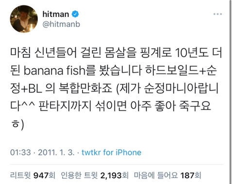 작성자박희람 작성시간 23.02.20 방시혁 진짜 오타쿠의 정석으로 생겼는데 오타쿠 중에 자아의탁 하는 사람 못 봐서 신기해