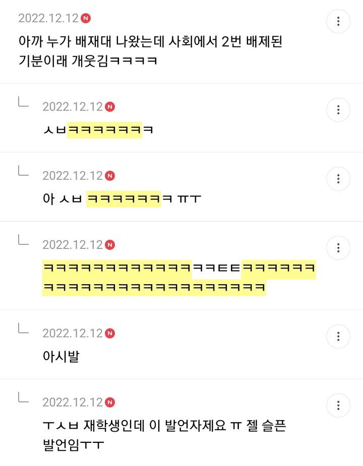 [스크랩] [배꼽의행방]지잡대 달글 웃긴거 다 긁어옴 ㅅㅂ 작성자혐오댓받고싶지않은여시|작성시간23.02.20|조회수12,933 목록 댓글 33 글자크기 작게가 글자크기 크게가 천안 하버드 시발하 시발 다 레전드아여기애들 자학전형으로 다 설대가게해줘라 ㅡㅡ 다음검색 스크랩 원문 : 쭉빵카페 현재 게시글 추가 기능 열기 북마크 공유하기 신고 센터로 신고 댓글 댓글 33 댓글쓰기 답글쓰기 댓글 리스트 작성자뉴_진_스 | 작성시간 23.02.20 만핟도 진짜 눈물 나도록 웃음 ㅠㅜㅜㅠㅠ 작성자울리는 | 작성시간 23.02.20 ㅋㅋㅋㅋㅋㅋㅋ만학도 ㅠ 작성자게름게름게름 | 작성시간 23.02.20 존나웃곀ㅋㅋㅋㅋㅋㅋㅋㅋㅋㅋ 작성자ENTP_율무차씨 | 작성시간 23.02.20 아진짜 ㅋㅋㅋ 요즘 여시에서 지잡대글이 젤웃겨 ㅋㅋㅋㅋㅋ 작성자갓생기니 | 작성시간 23.02.20 천안 하버드가 존나웃겨 ㅋㅋㅋㅋㅋㅋㅋㅋ 댓글 전체보기