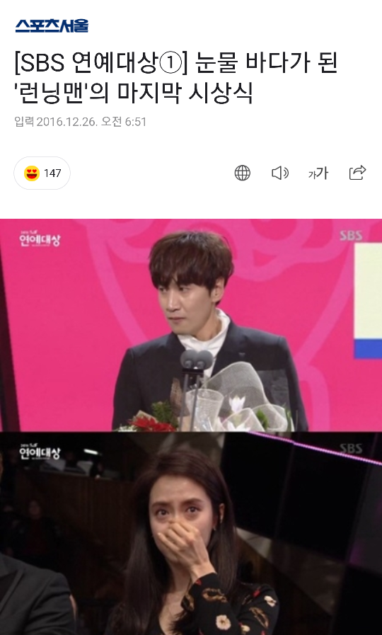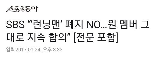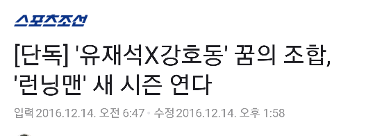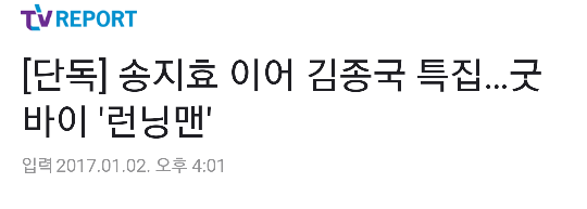 갑자기 2017년 1월부터 런닝맨 시즌2가 시작한다는 소식과 함께 김종국, 송지효 하차 기사가 남