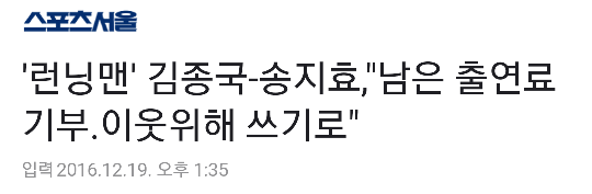 이와중에 출연로 기부하겠다는 송지효, 김종국ㅜㅜ