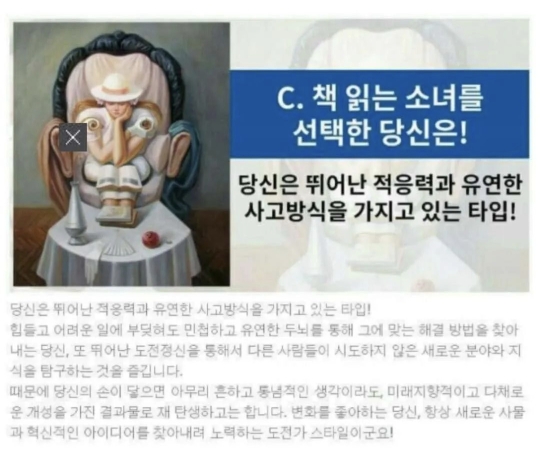 [흥미돋][심리테스트] 무엇이 먼저 보이시나요? 작성자호러냥이|작성시간23.02.22|조회수115,392 목록 댓글 29 글자크기 작게가 글자크기 크게가 출처 : https://www.instagram.com/p/Co6q5MEhi_Z/?igshid=YmMyMTA2M2Y= 다음검색 현재 게시글 추가 기능 열기 북마크 공유하기 신고 센터로 신고 댓글 댓글 29 댓글쓰기 답글쓰기 댓글 리스트 작성자오월아벌써가니 | 작성시간 23.02.22 남자얼굴! 작성자뤼비통 | 작성시간 23.02.22 썸넬은 남자 들어오니 여자 작성자도라버려도라 | 작성시간 23.02.22 아재 대갈쓰 작성자니나노살고싶엉 | 작성시간 23.02.23 눈알 작성자똥깡쥐 | 작성시간 23.02.26 남자 댓글 전체보기