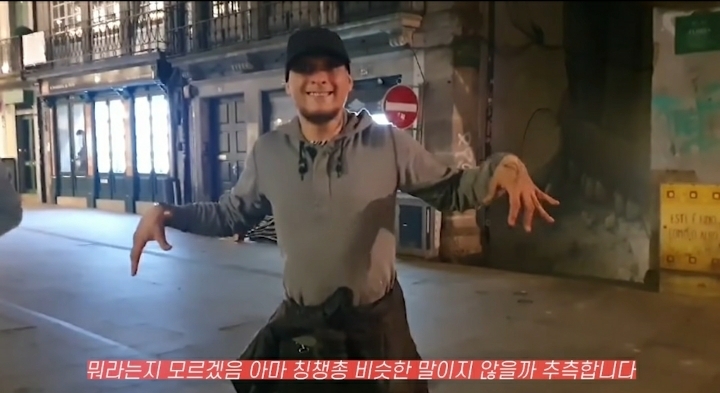 이상한 포즈 취하면서 칭촤오 어쩌구 웅앵웅
