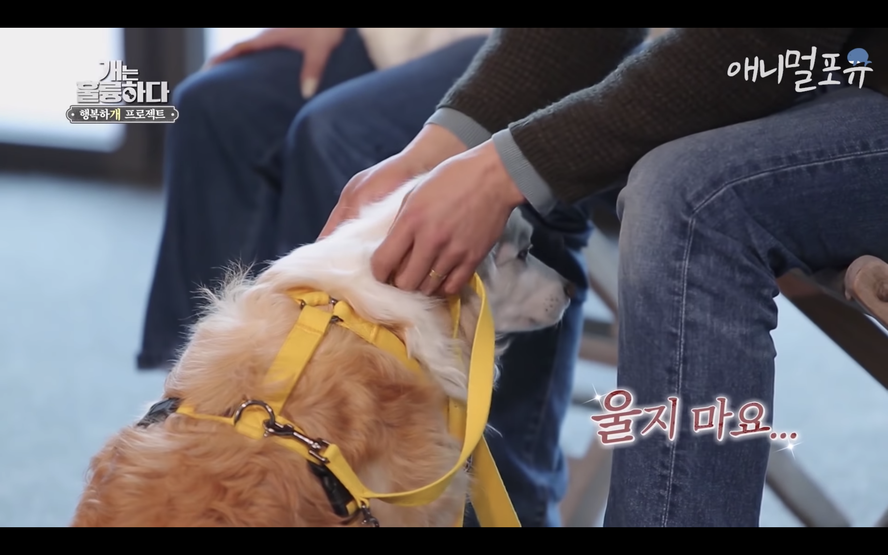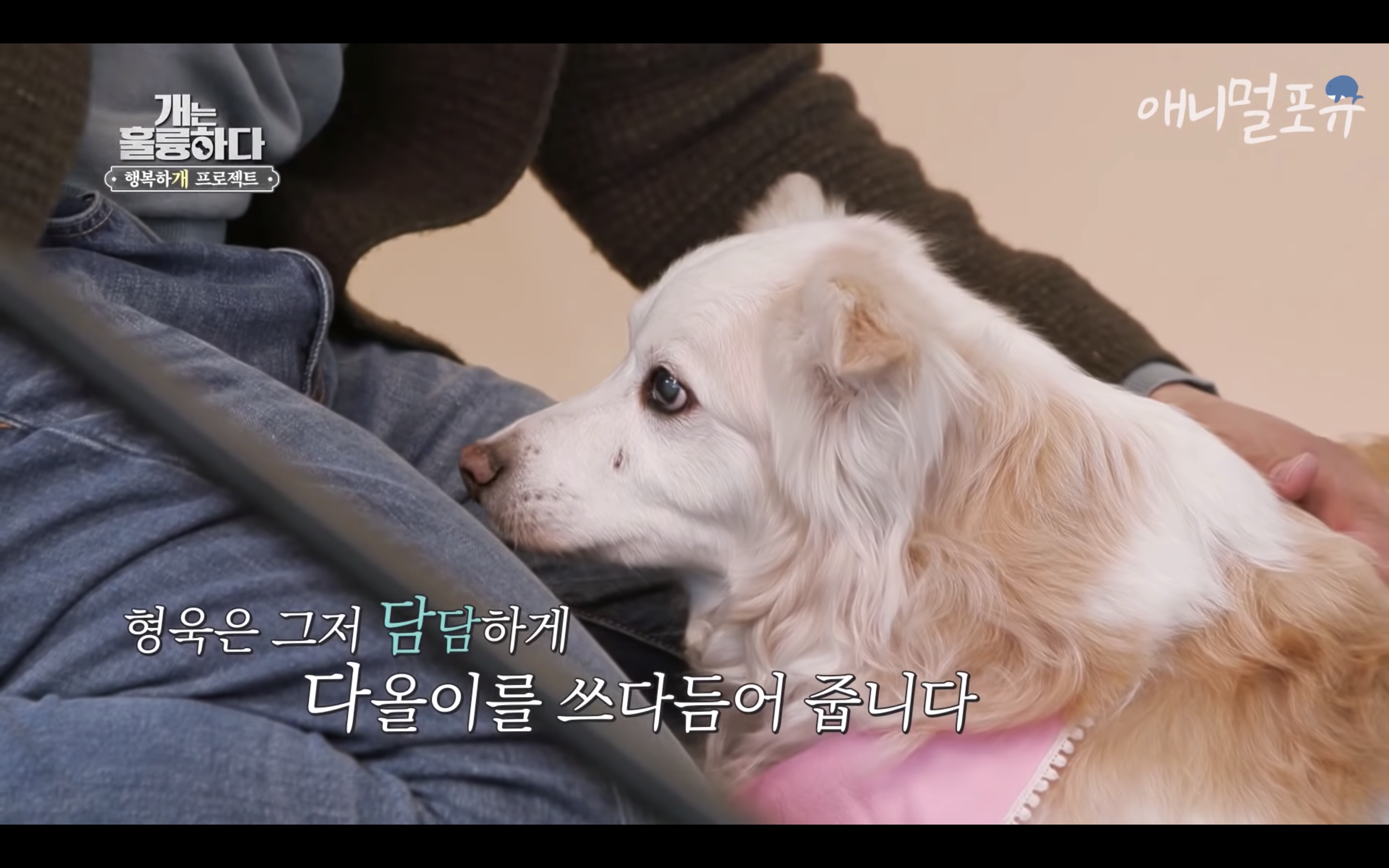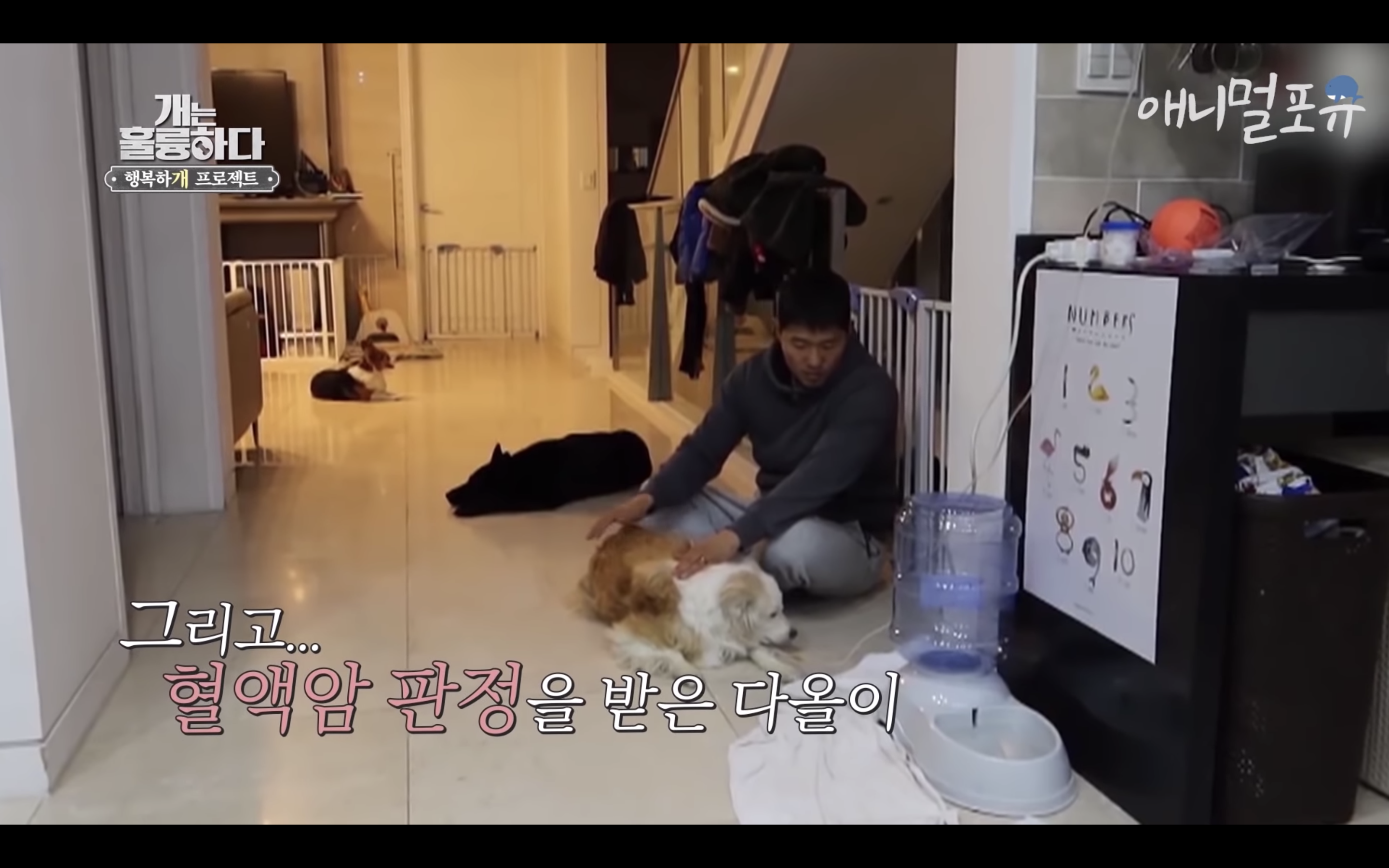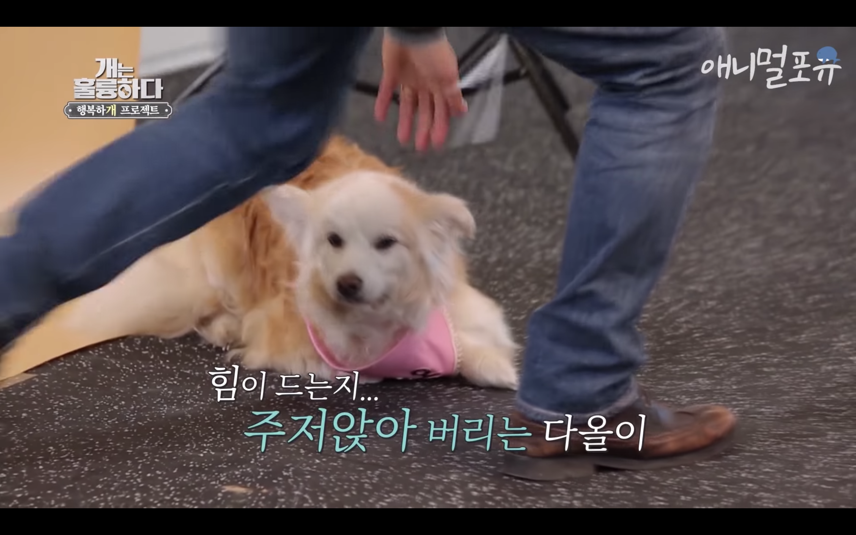 제대로 걷지도 못하는 다올이가 강형욱이 눈물을 흘리자마자 벌떡 일어나서 강형욱에게로 고개를 돌림..