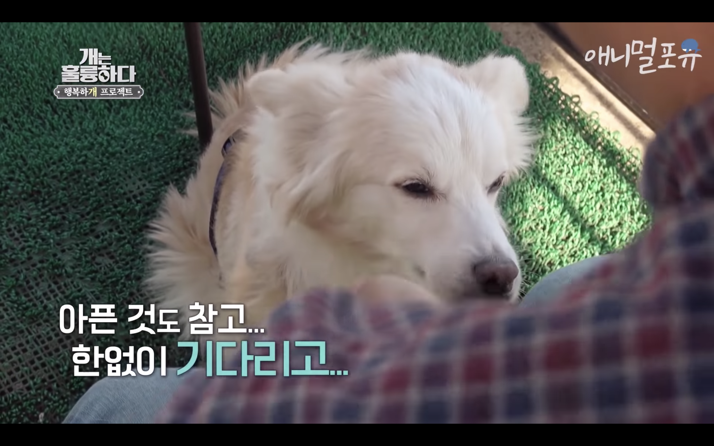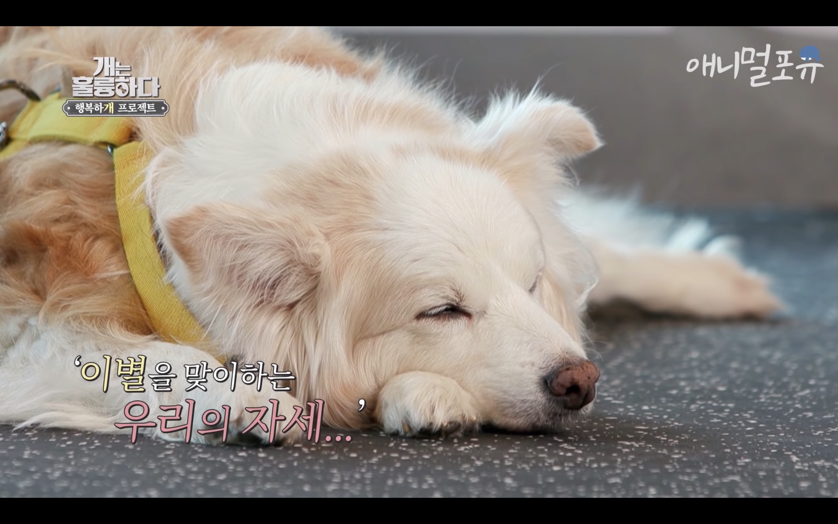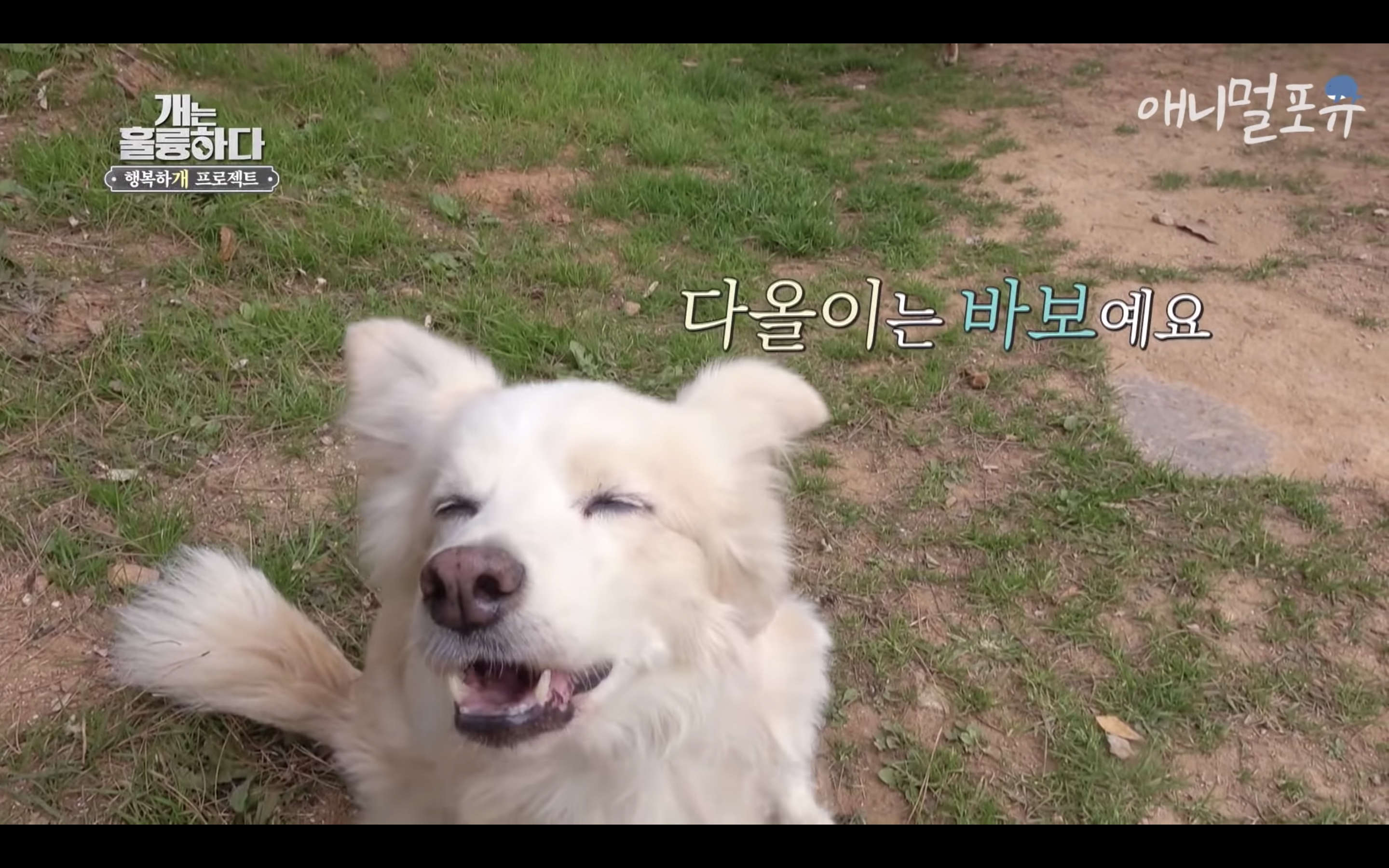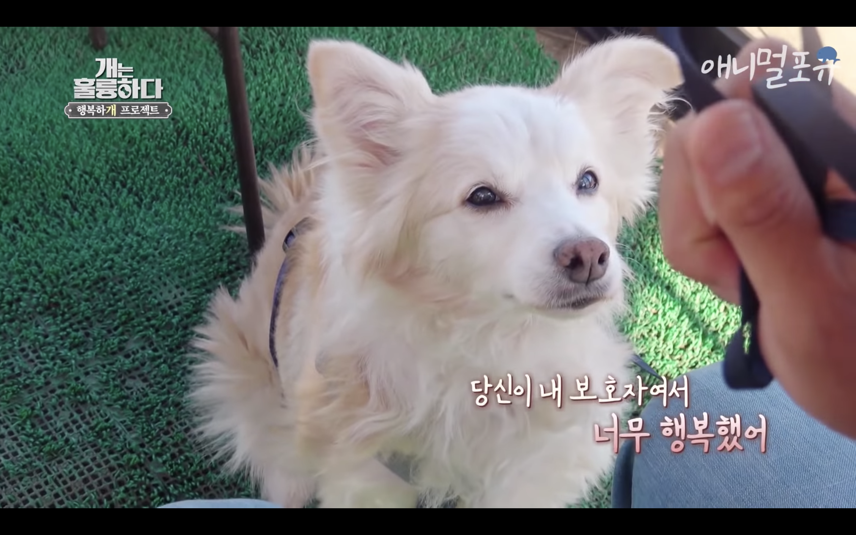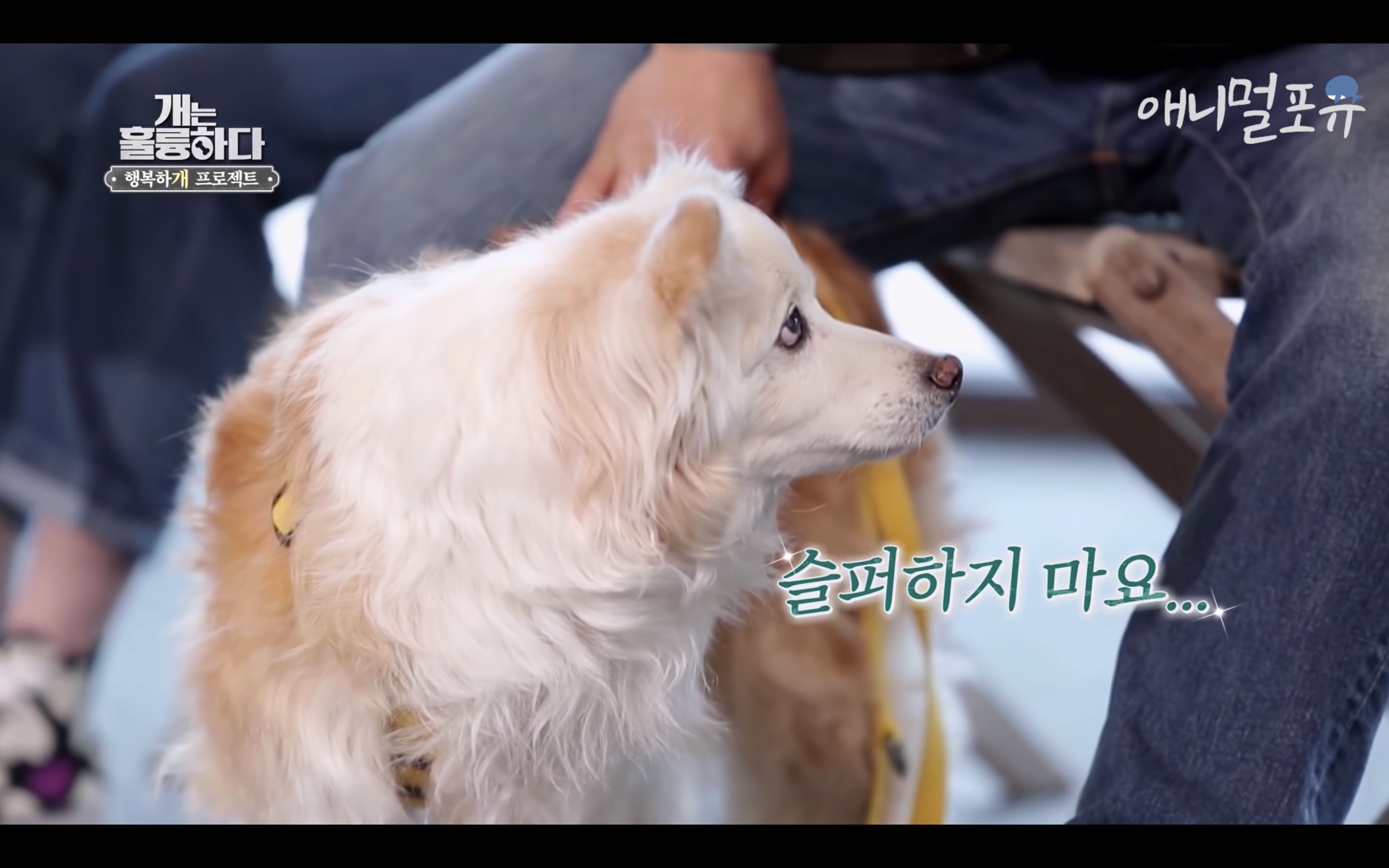 제대로 걷지도 못하는 다올이가 강형욱이 눈물을 흘리자마자 벌떡 일어나서 강형욱에게로 고개를 돌림..