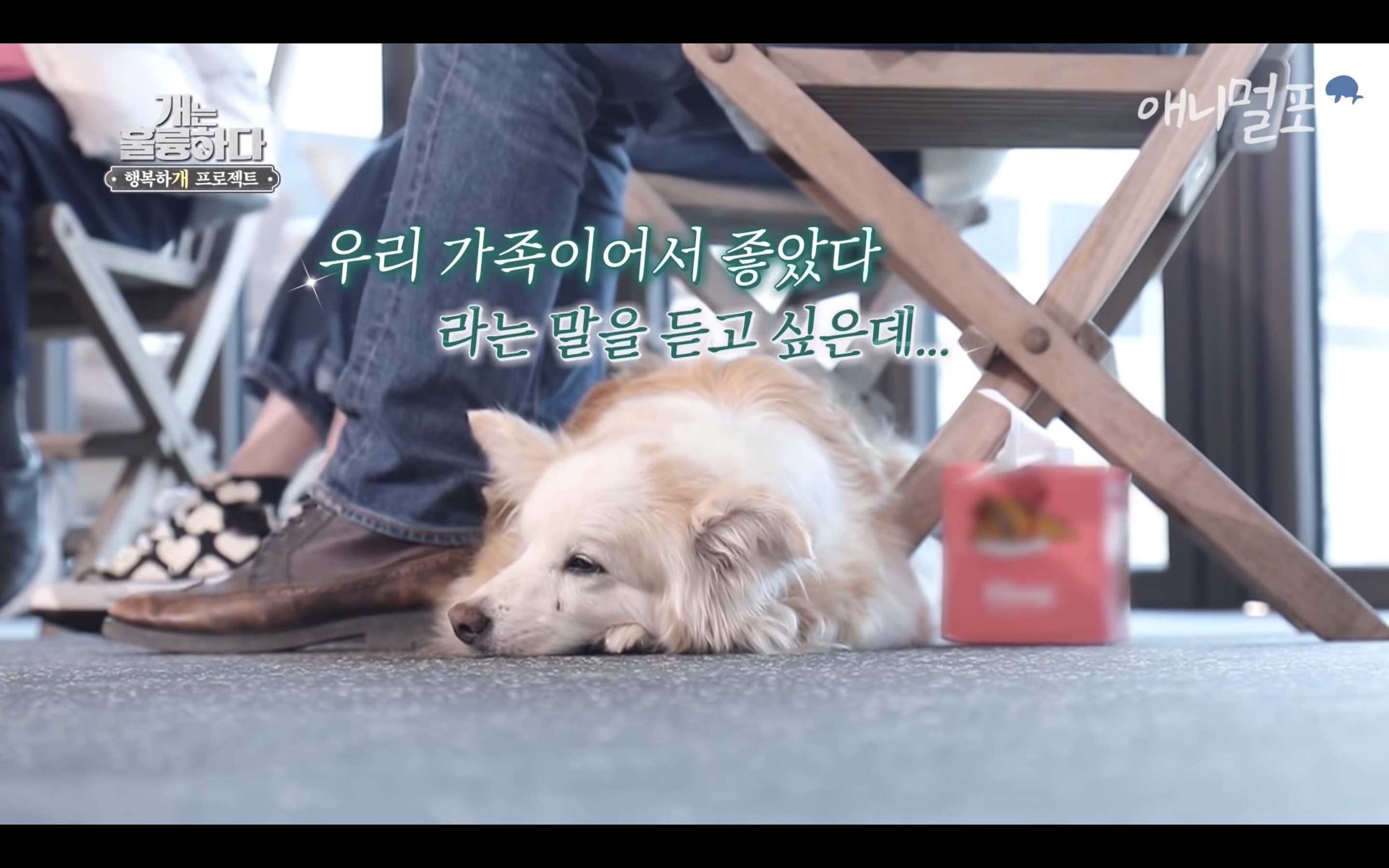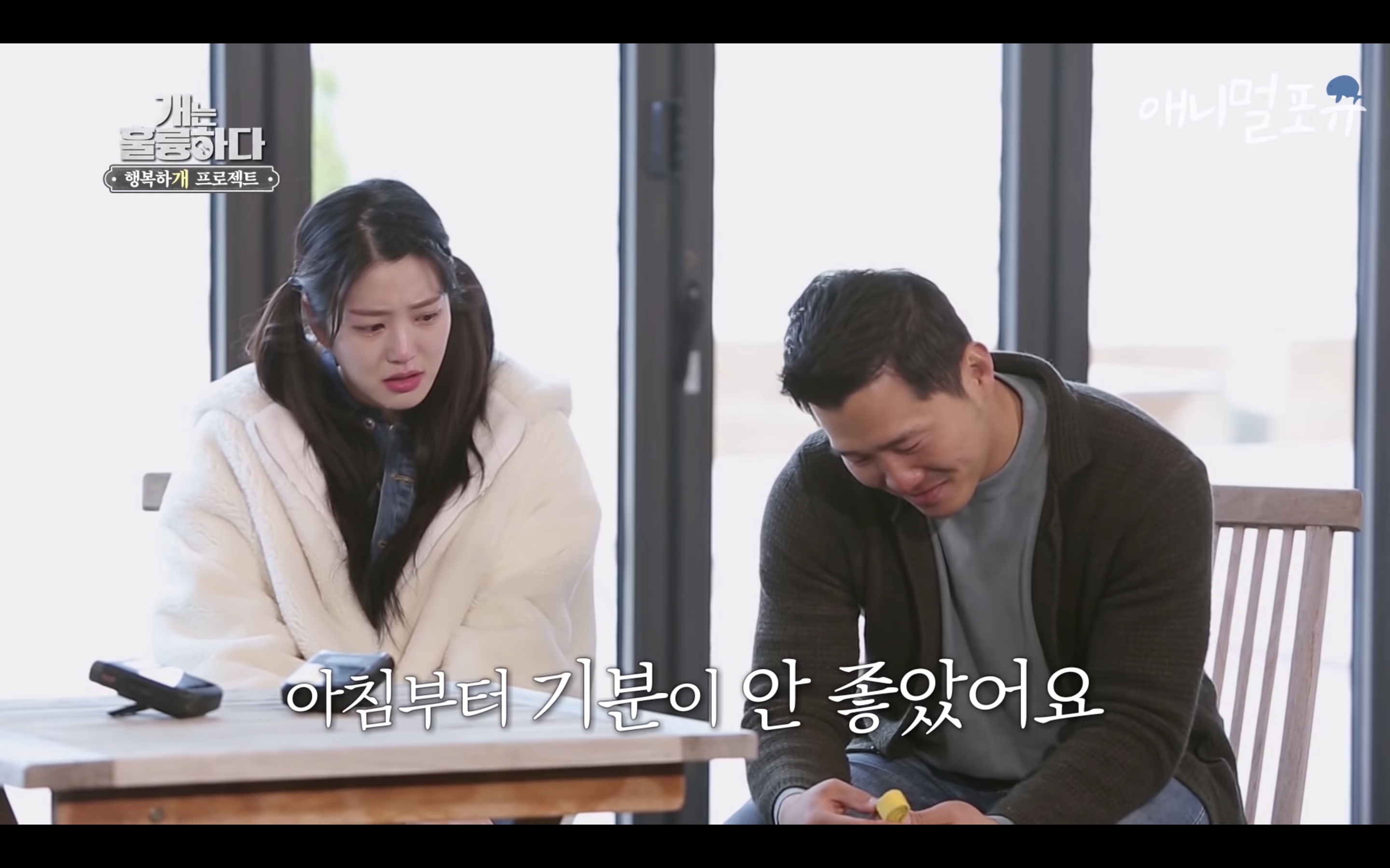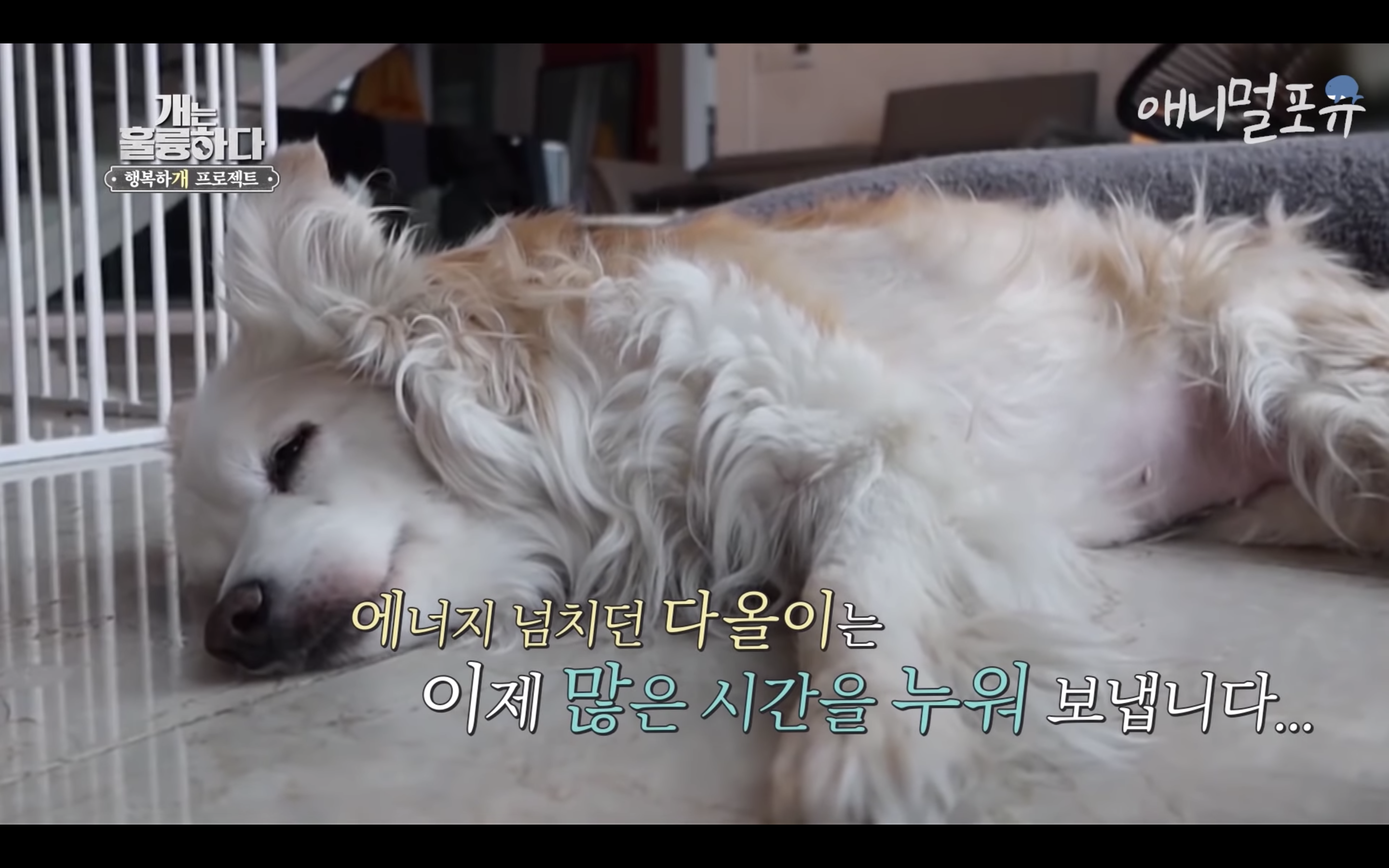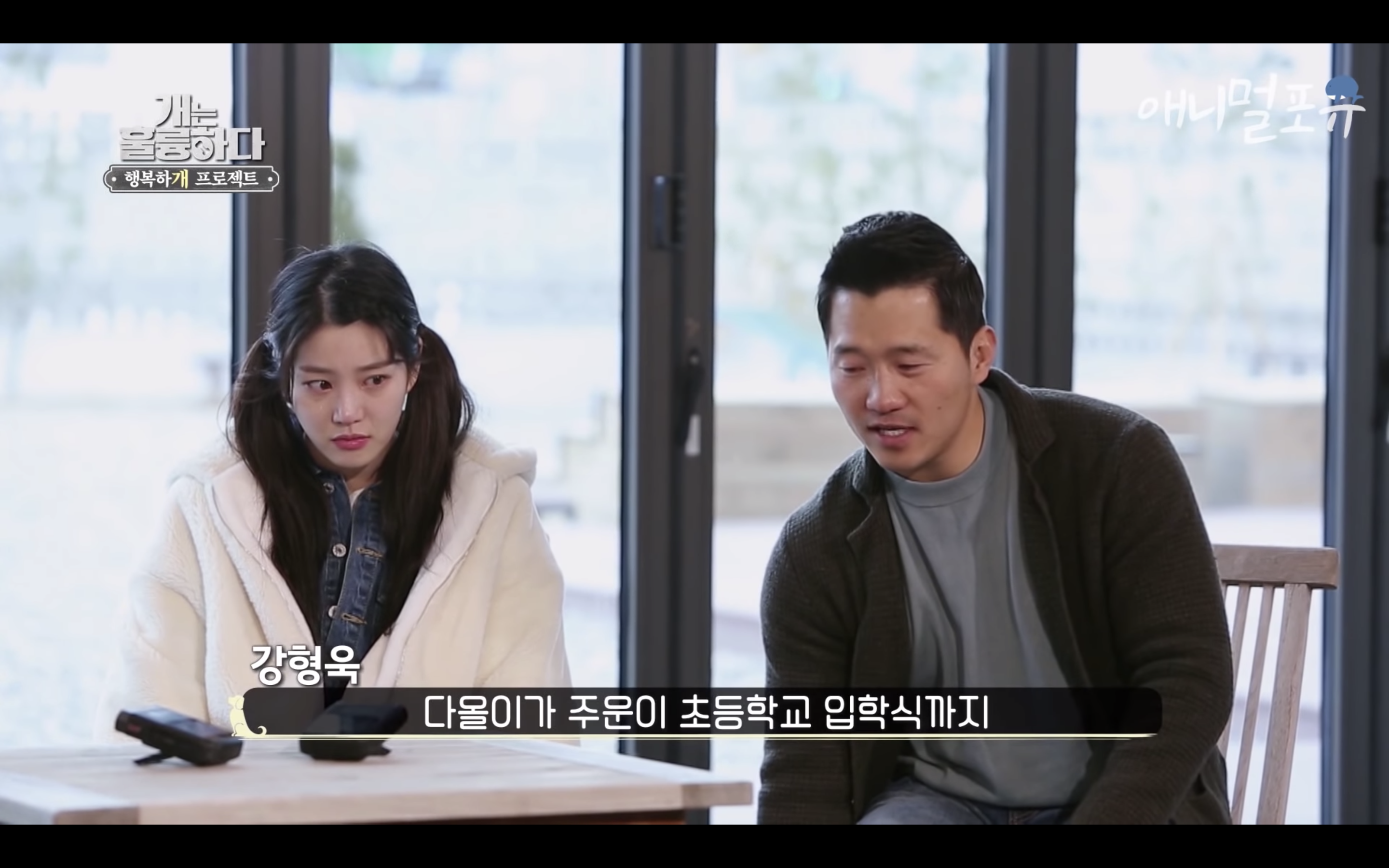 제대로 걷지도 못하는 다올이가 강형욱이 눈물을 흘리자마자 벌떡 일어나서 강형욱에게로 고개를 돌림..