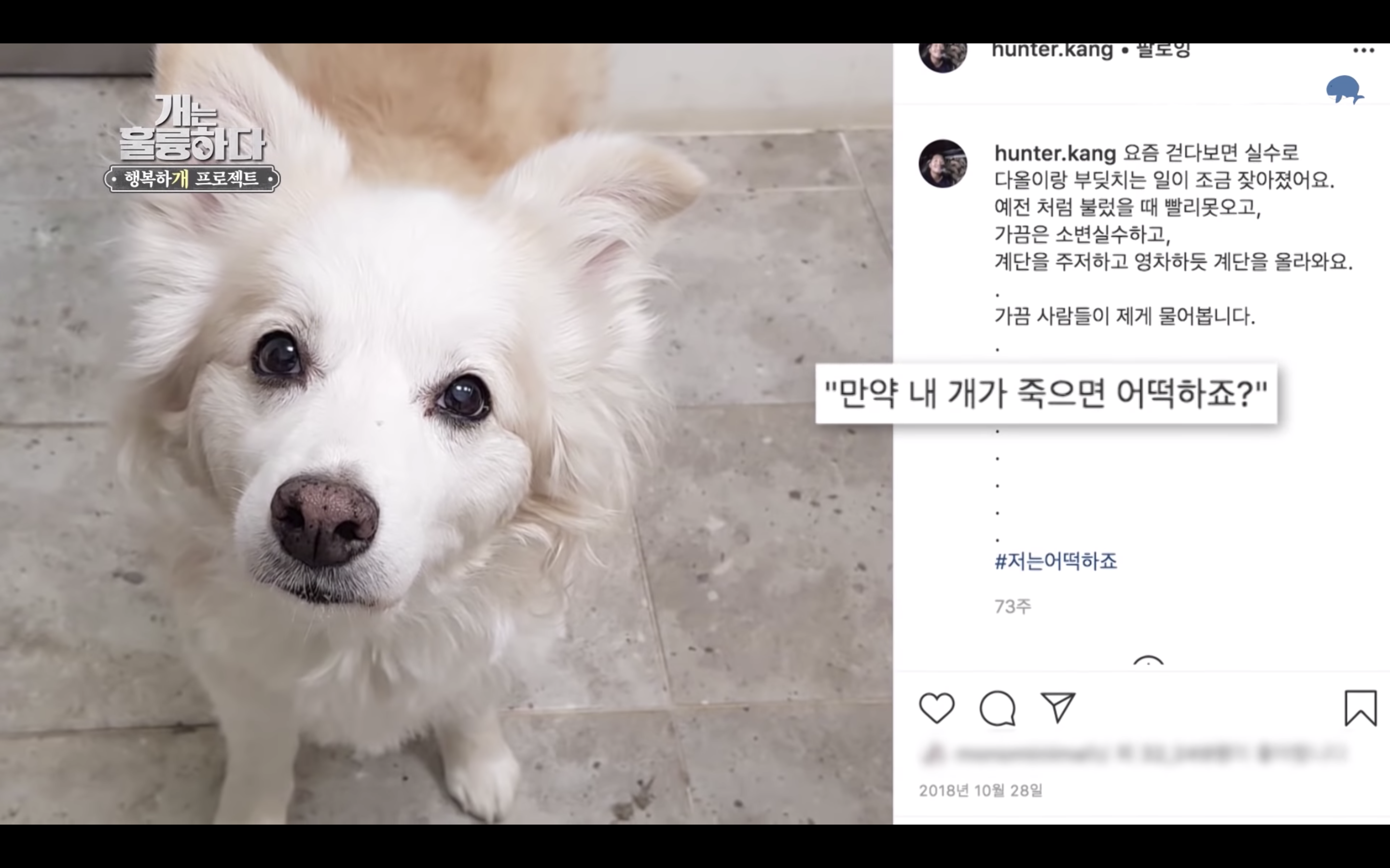 강형욱 : 제 옆에 다올이가 없겠죠? 제가 소파에 앉아 있으면 항상 옆에 왔던 친구가 없겠죠? 근데 그게 이제 무서운거에요. 내가 기억하지 못하는 그 순간 순간들에 다올이가 있었는데, 발견하지 못 한 순간들이 한꺼번에 올까봐....
